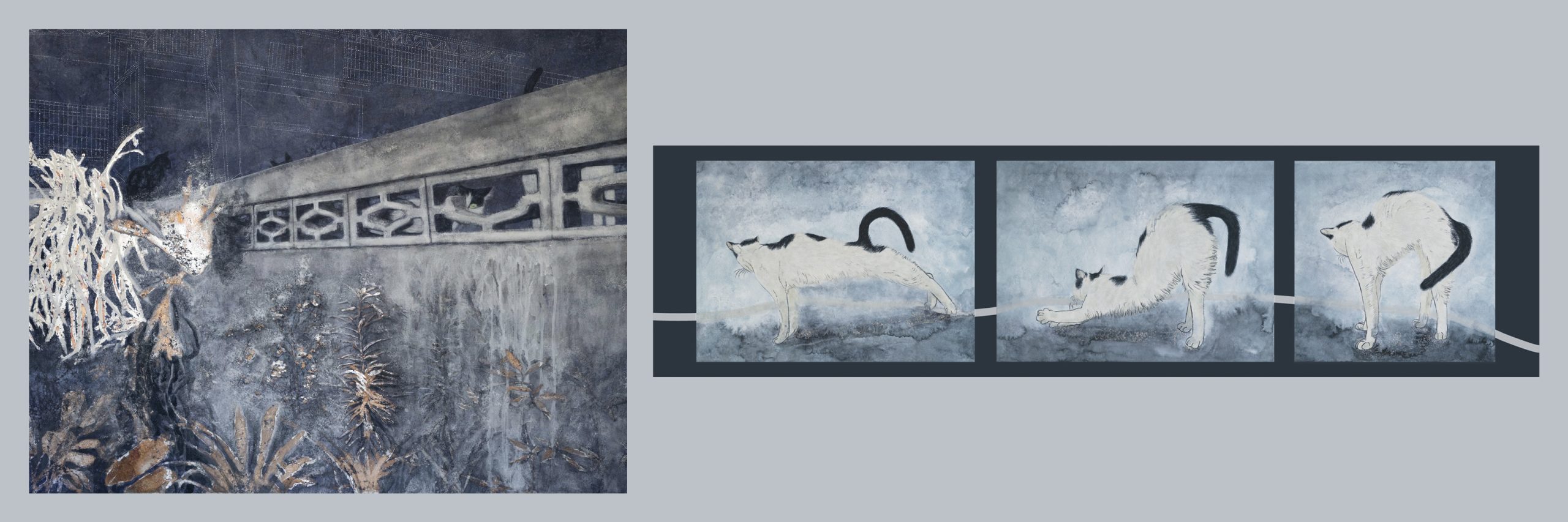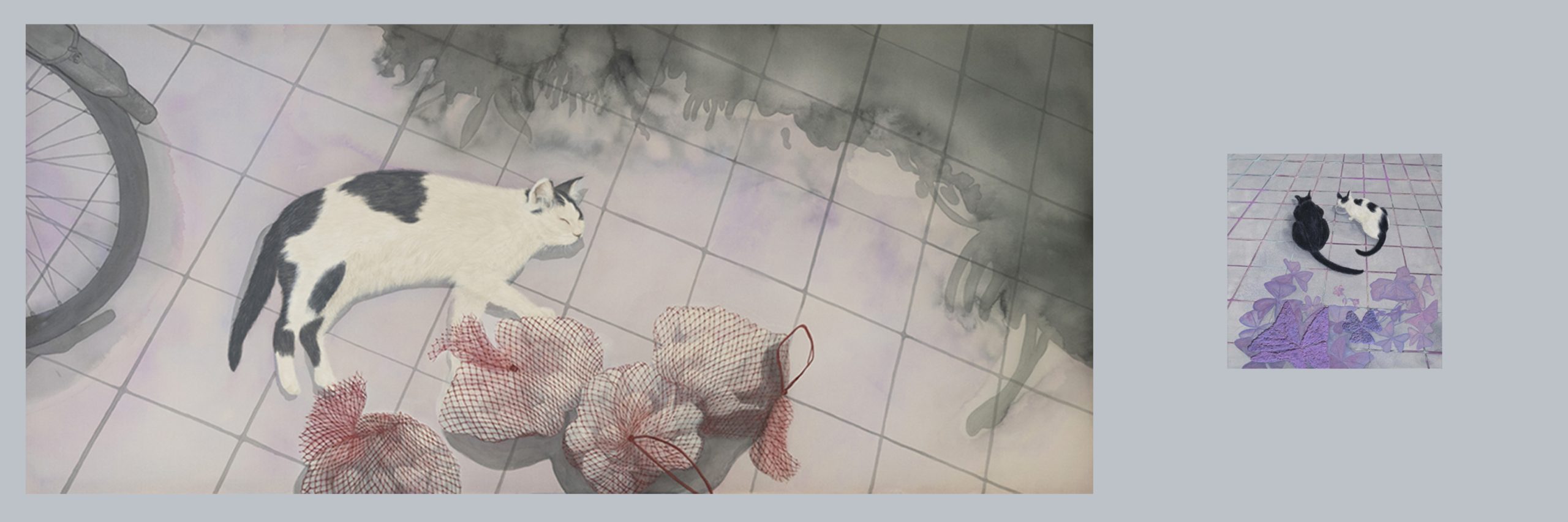 The Mirage series is developed within living environment scenes, TNR cat colonies, plants, open yards and garages. Life is equal until we discover that nothing is real; everything is a resonant collision of frequency and wisdom. Through the exchange of viewing angles, the cats and plants are peacefully in their oasis wonderland, or is our oasis formed by the existence of cats and natural ecology?