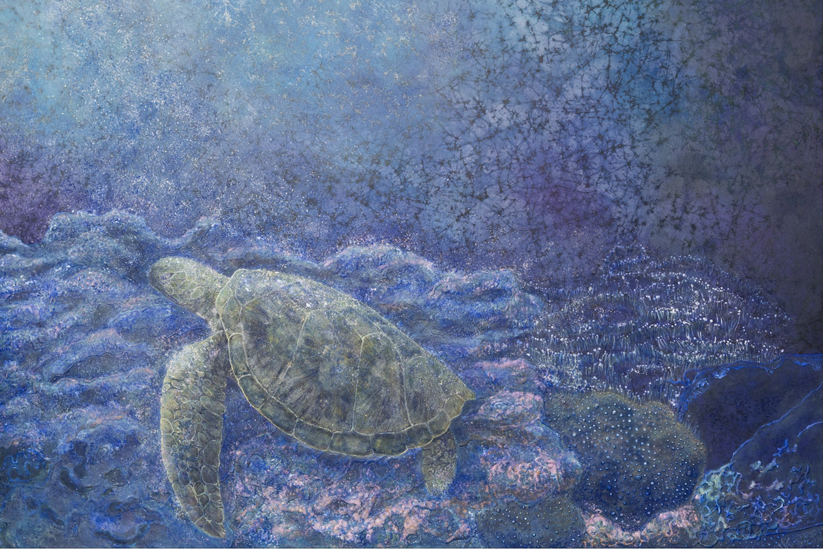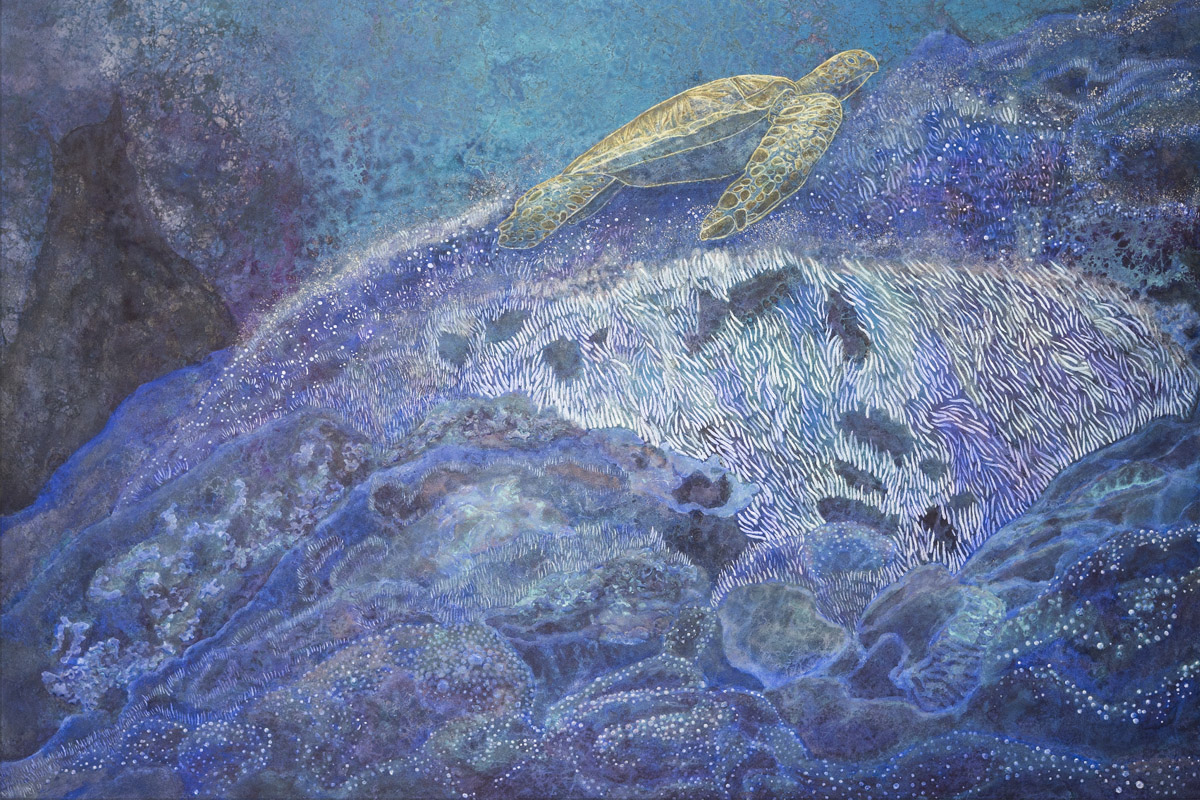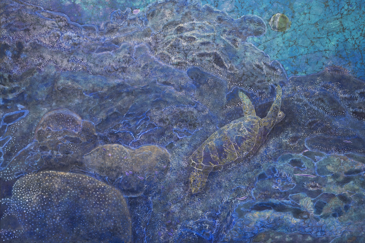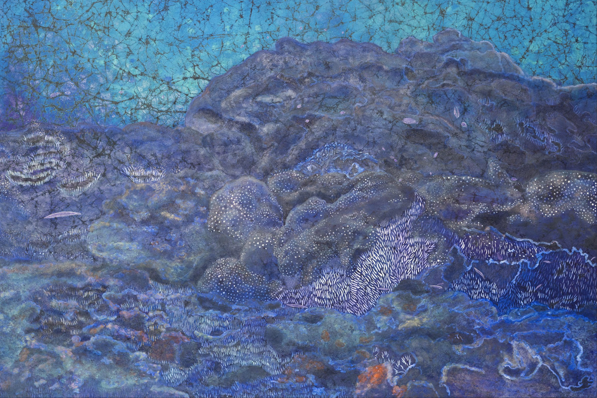 The blue transparency is superimposed with various marine life, the blue colour of the ocean is reflected underwater due to the refraction of light and sky, coral reefs, fish, microorganisms, aquatic plants…the colours are all incredibly beautiful. It’s so fascinating .